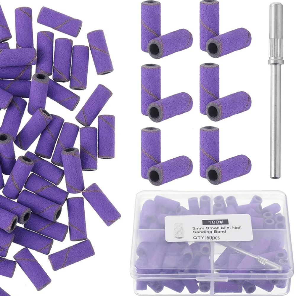 60 Pcs 3mm Fine Sanding Bands For Nail Drill, 1 Pc Small Mandrel Nail Bit, 180 Grit Nail File Sanding Bands, Small Sanding Band