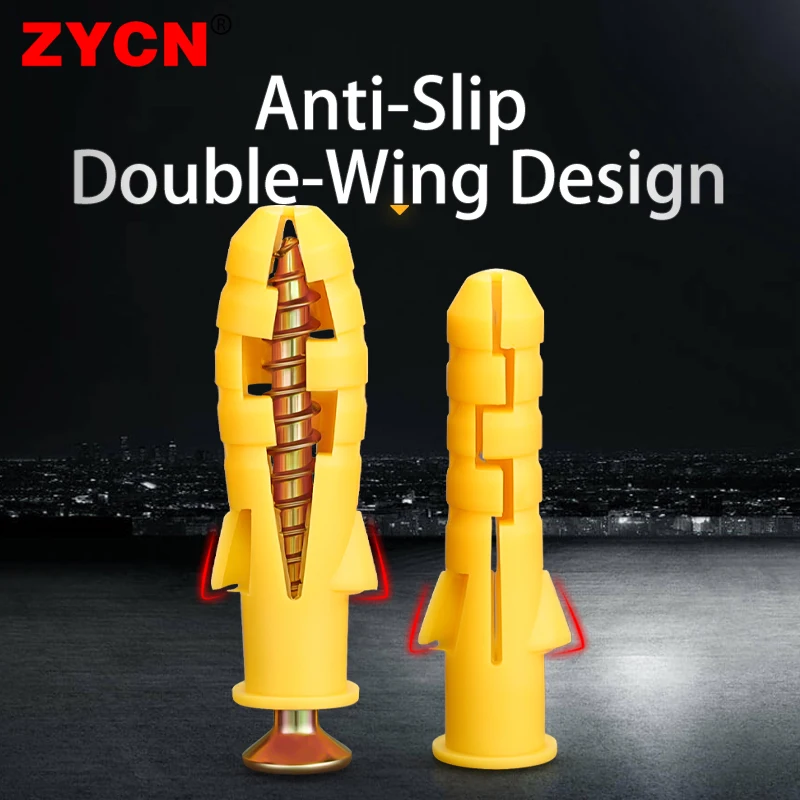 10-50pcs M6 M8 M10 Yellow Ribbed Plastic Anchor Wall Plastic Expansion Pipe Tube Wall Plugs Drywal