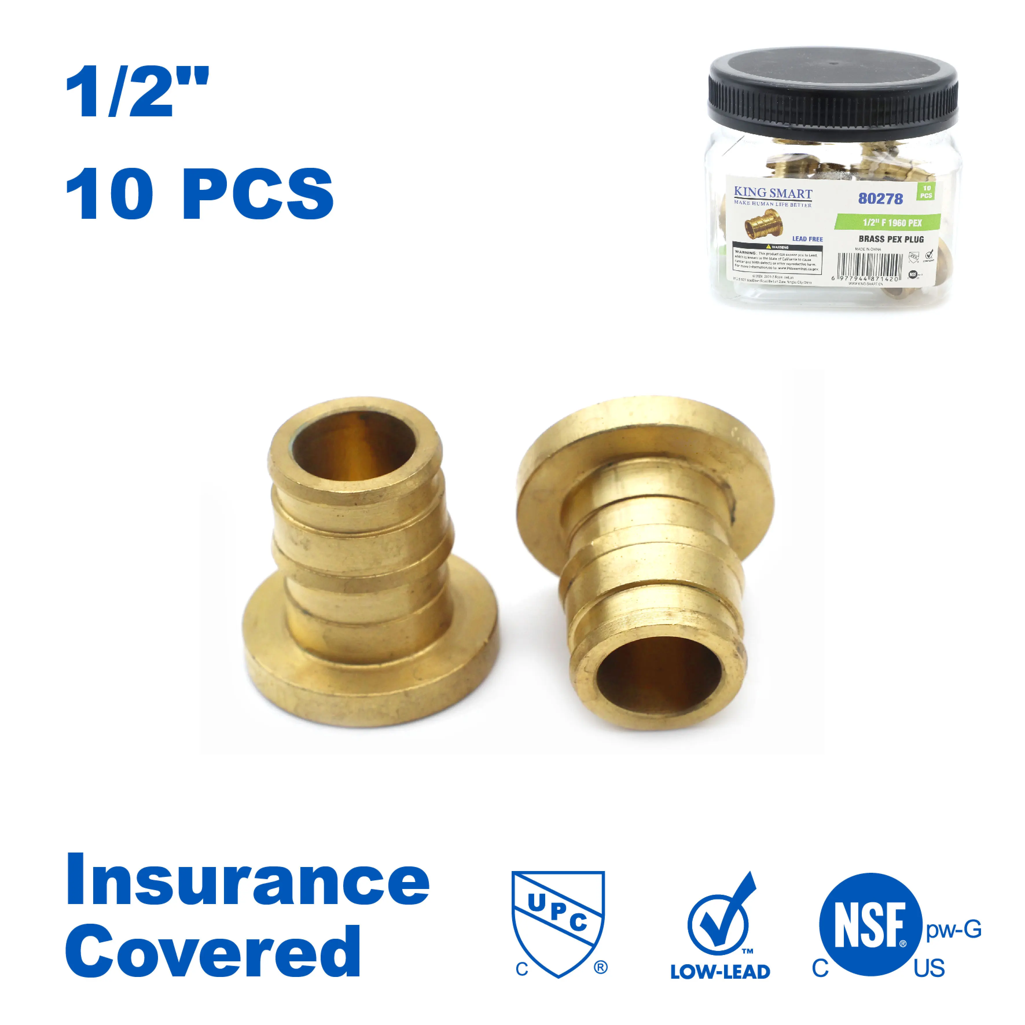 KING SMART 1/2" F1960 PEX Plug; PEX A Expansion 10Pcs/Case; Lead Free Brass; 80278
