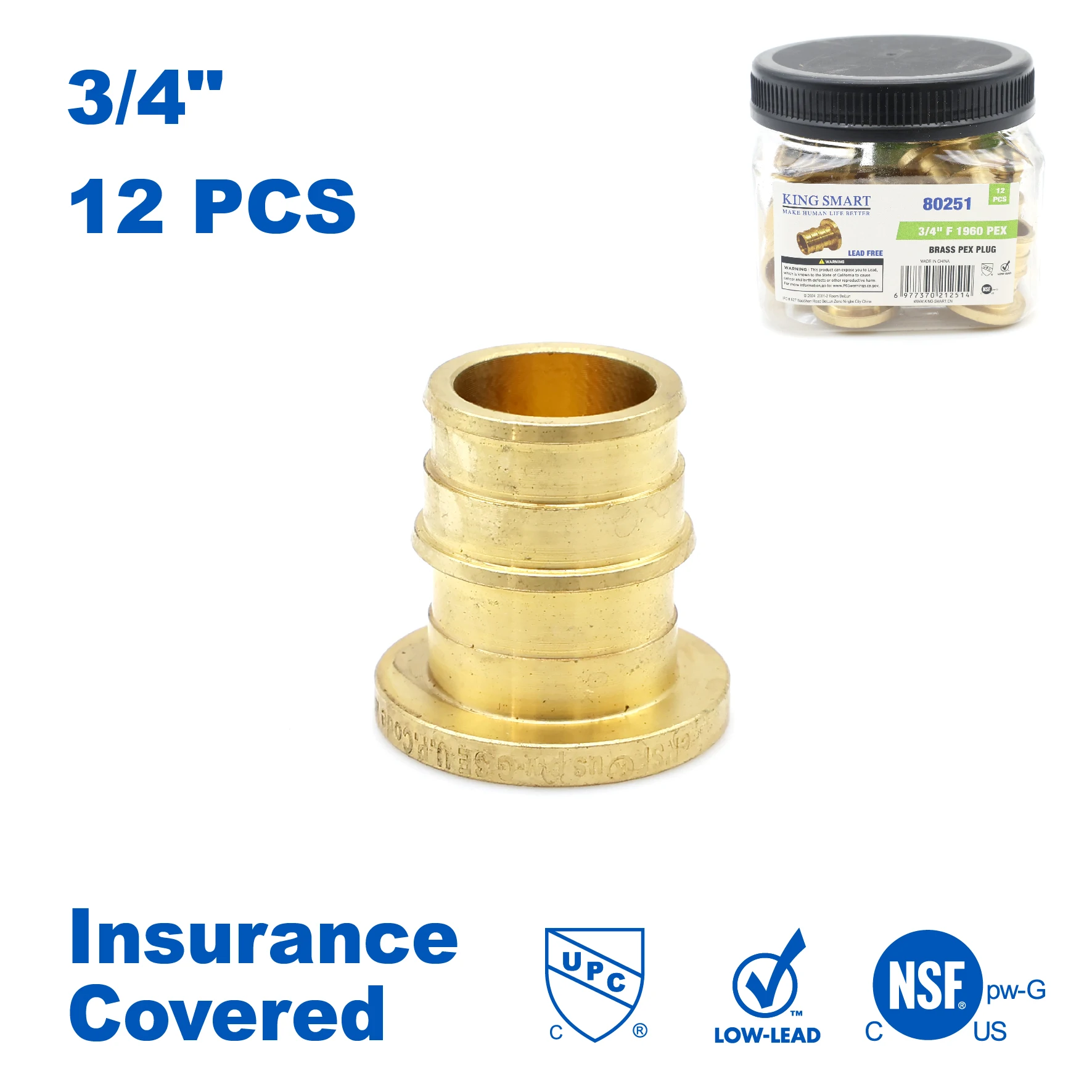 KING SMART F1960/Wisbo/PEX A Expansion PEX 3/4" PEX Plug; 12Pcs/Case; Lead Free Brass; 80251