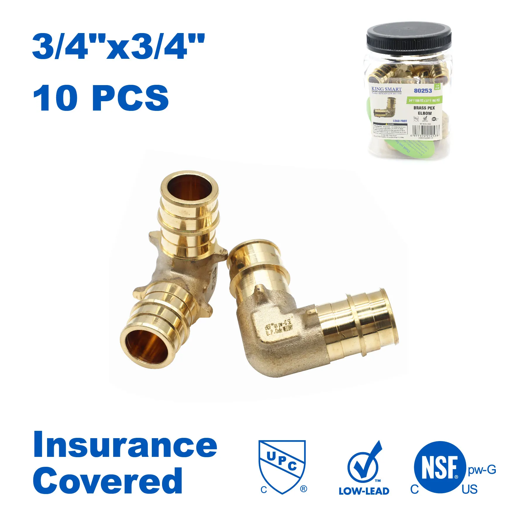 KING SMART 3/4" F1960/PEX A Expansion PEX Elbow; 10Pcs/Case; Lead Free Brass; 80253
