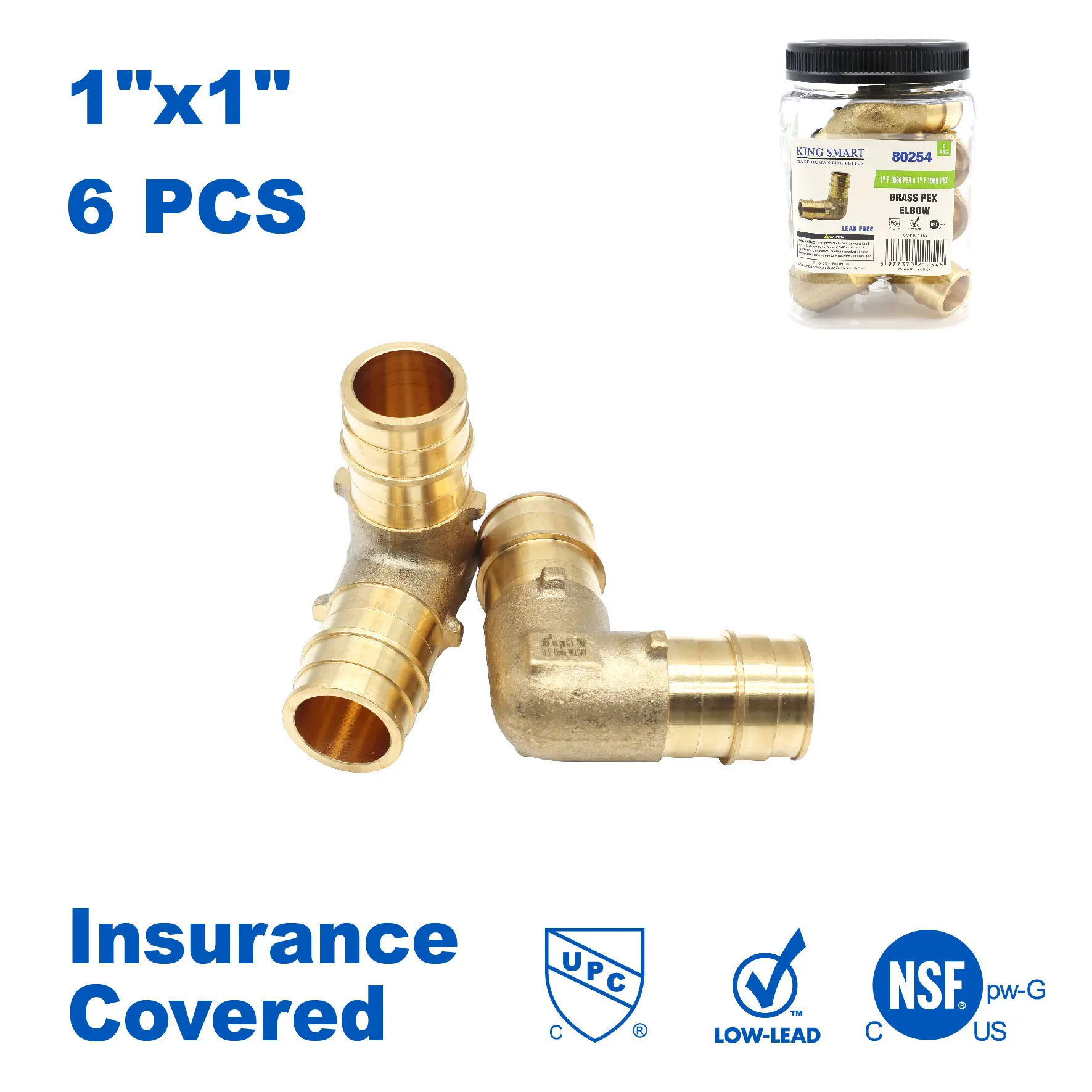 KING SMART 1" F1960/PEX A Expansion PEX Elbow; 6Pcs/Case; Lead Free Brass; 80254