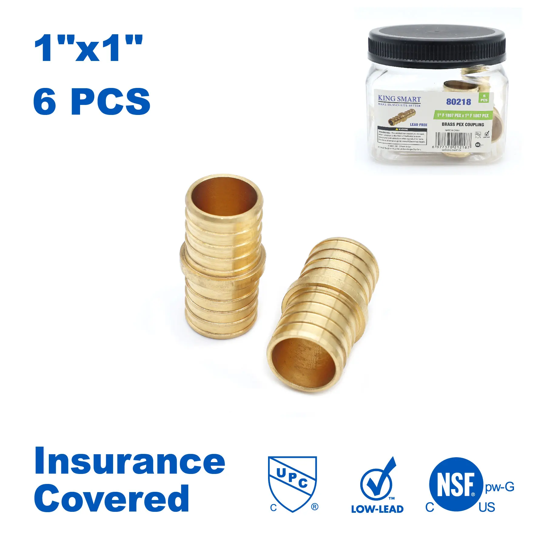 KING SMART 1" Crimp/F1807 PEX Straight Coupling; Lead Free Brass; 6Pcs/Case; 80218  Read more