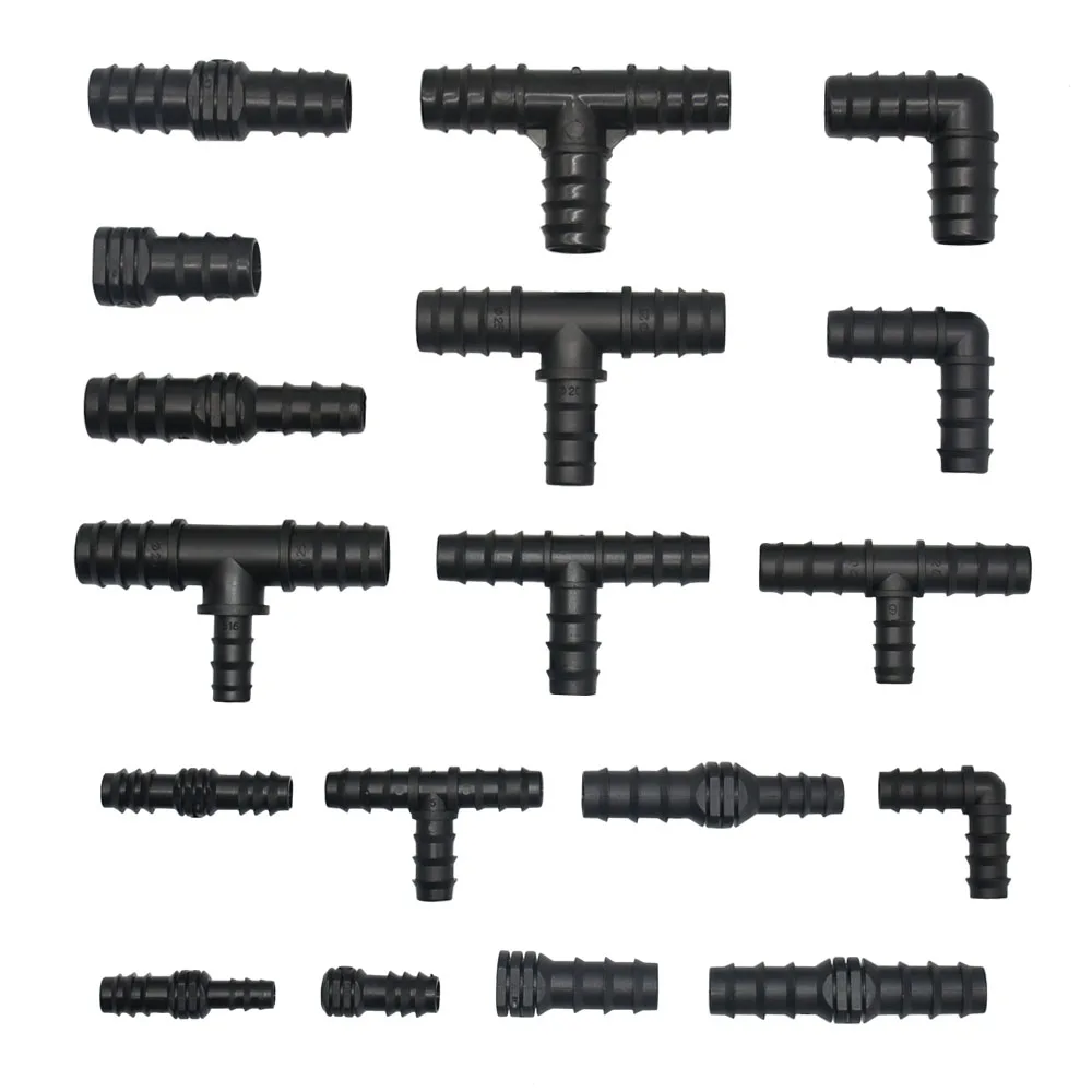 Plastic Hose Barb Connectors 16/20/25mm Pe Tube Tee Elbow Cross End Plug Reducing Coupler Drip Irrigation Fitting 1/2 3/4 1"