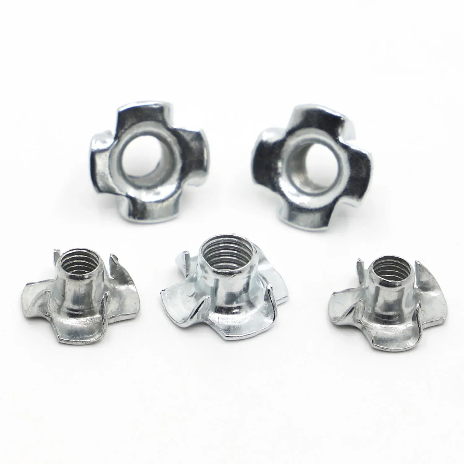 20pcs M3 M4 M5 M6 M8 M10 Zinc Plated Four Claws Nut Speaker T-nut Blind Pronged Insert Tee Nut Furniture Hardware