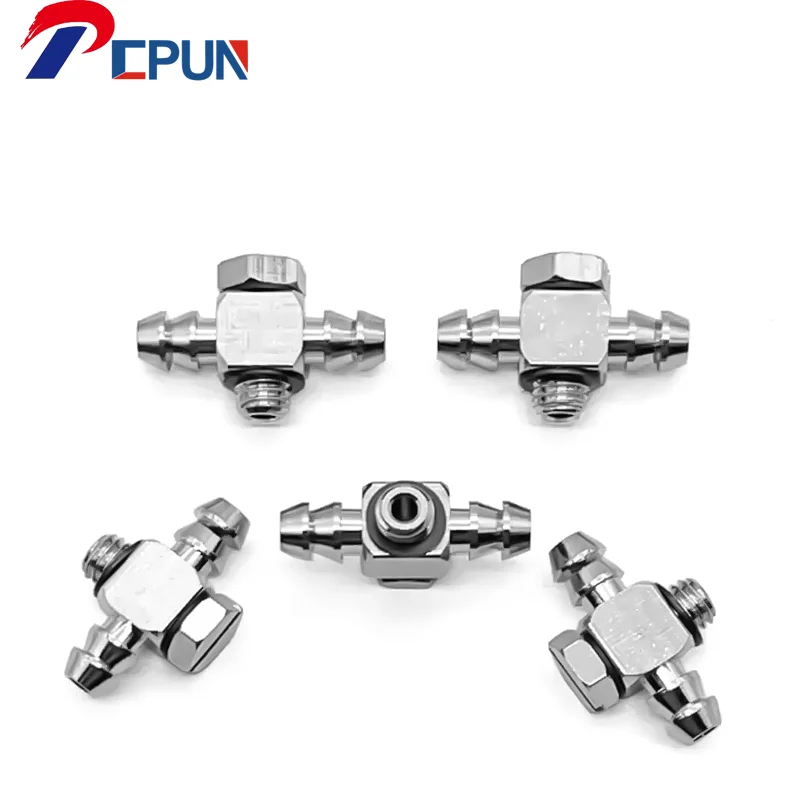 Pneumatic Hardware Metal Tee Pagoda Barb Type T M3 M5 M6 Tee SMC Quick Fitting For Pneumatic Tools Fittings or Hose Air Fittings
