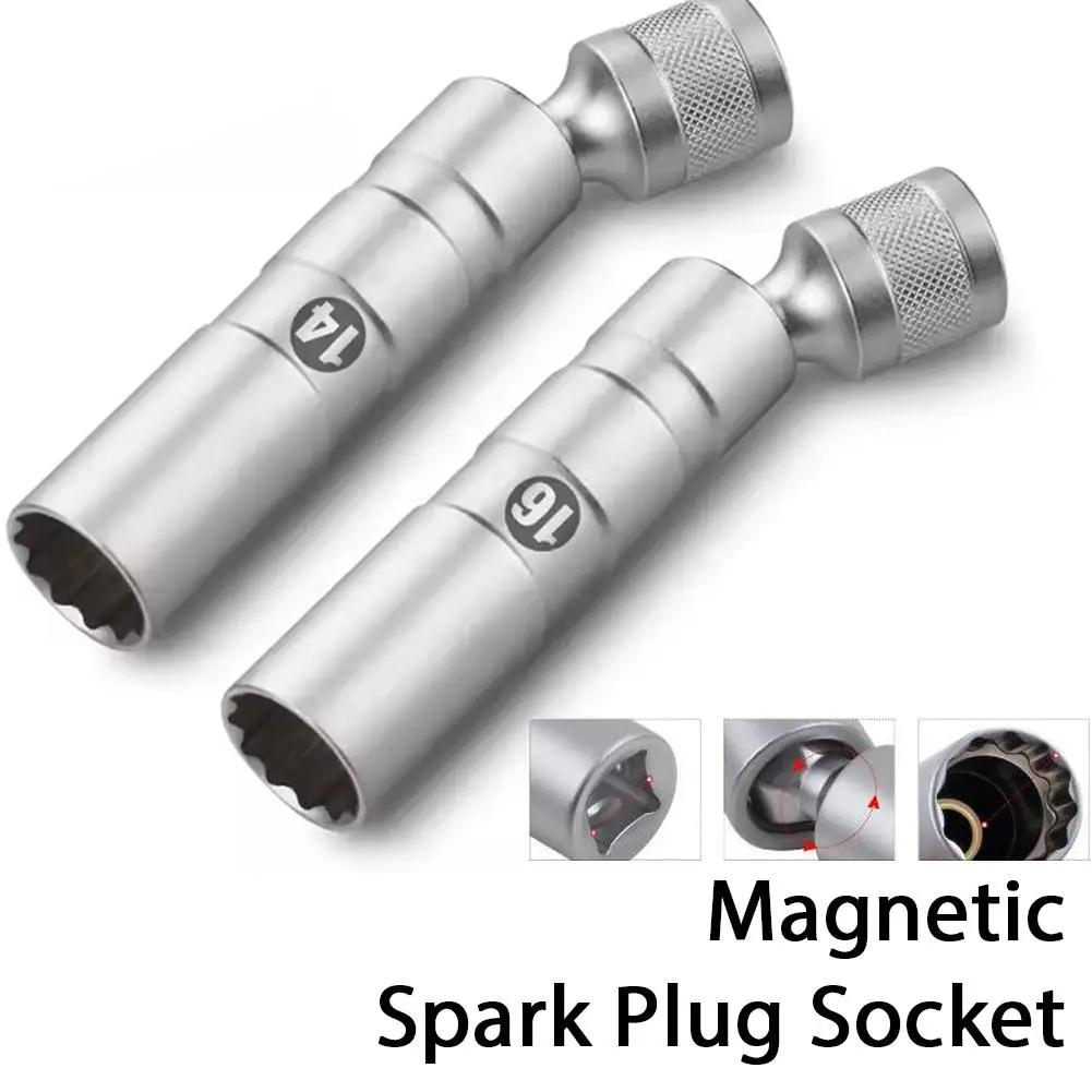 1pc 14/16mm Spark Plug Socket Wrench Adapter Set Universal Joint with Magnetic Flexible Socket Thin Drive Car Repair Tool