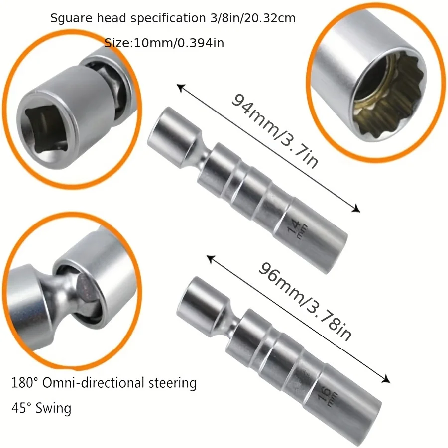 14mm &16mm Thin Wall Magnetic Swivel Spark Plug Socket 3/8-Inch Drive 12-Point Spark Plug Socket Removal Tool Access