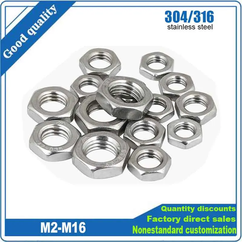 2/5/10/20/50pcs M2 M2.5 M3 M4 M5 M6 M8 M10 M12 M14 M16 304 316 A2 A4 Stainless Steel Flat Hex Hexagon Thin Nut Jam Nut DIN439  Read more