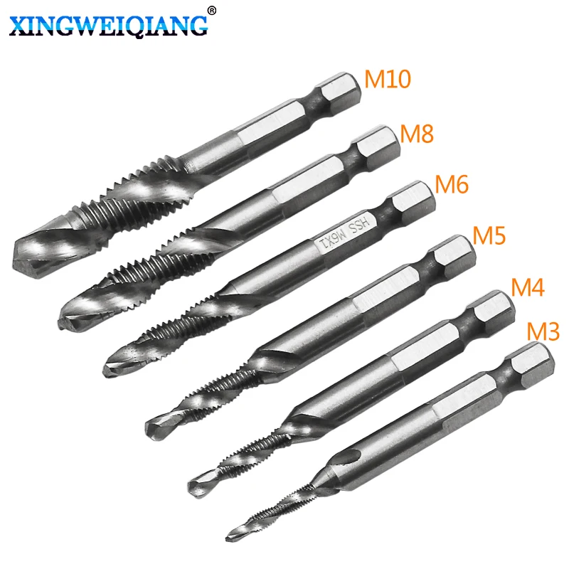M3 M4 M5 M6 M8 M10 Composite Tap Drill Bit Thread Spiral Screw Tap 1/4'' Hex HSS 4341
