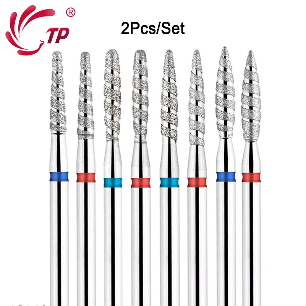 TP 2pcs Flame Diamond Nail Drill Bits 3/32" Spiral Particle Manicure Drill Bit for Nails Sander Tips Cuticle Clean Tools