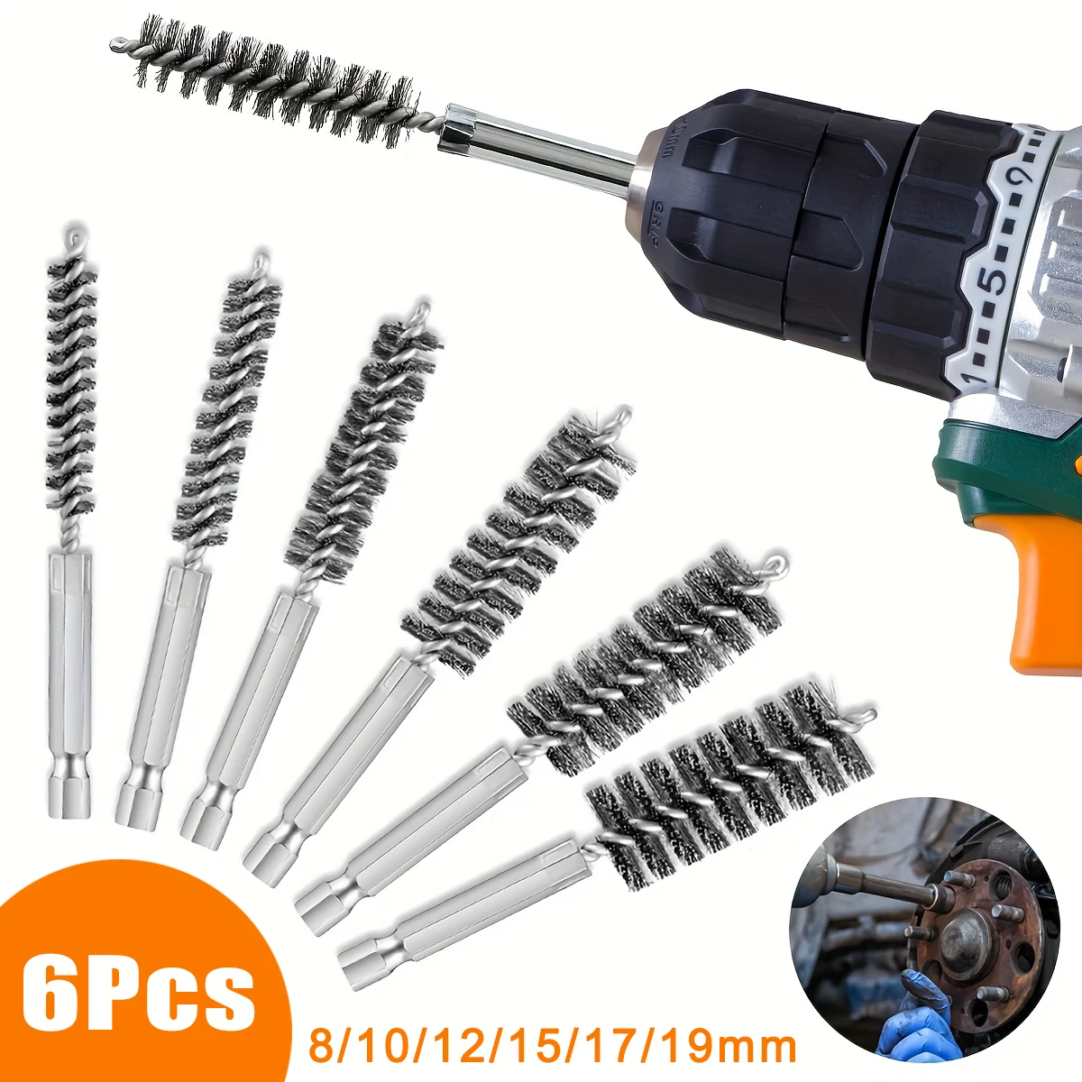 6 PCS Stainless Steel Bore Brush Wire Brushes Set 6 Size Cleaning Twisted Drill Wire Bore Brush for Cleaning Tubes Rust Bearings