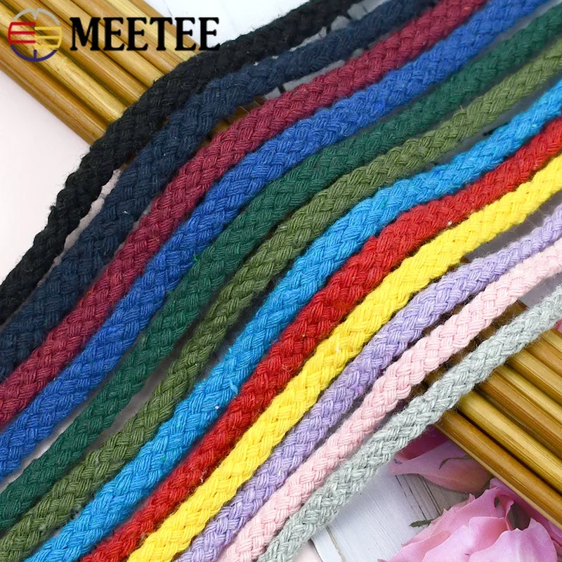 10M 5/7mm Cotton Cord for Sewing Twisted Rope Bag Strap Weave Cords Woven String Home Textile Decoration Ropes Craft Accessories
