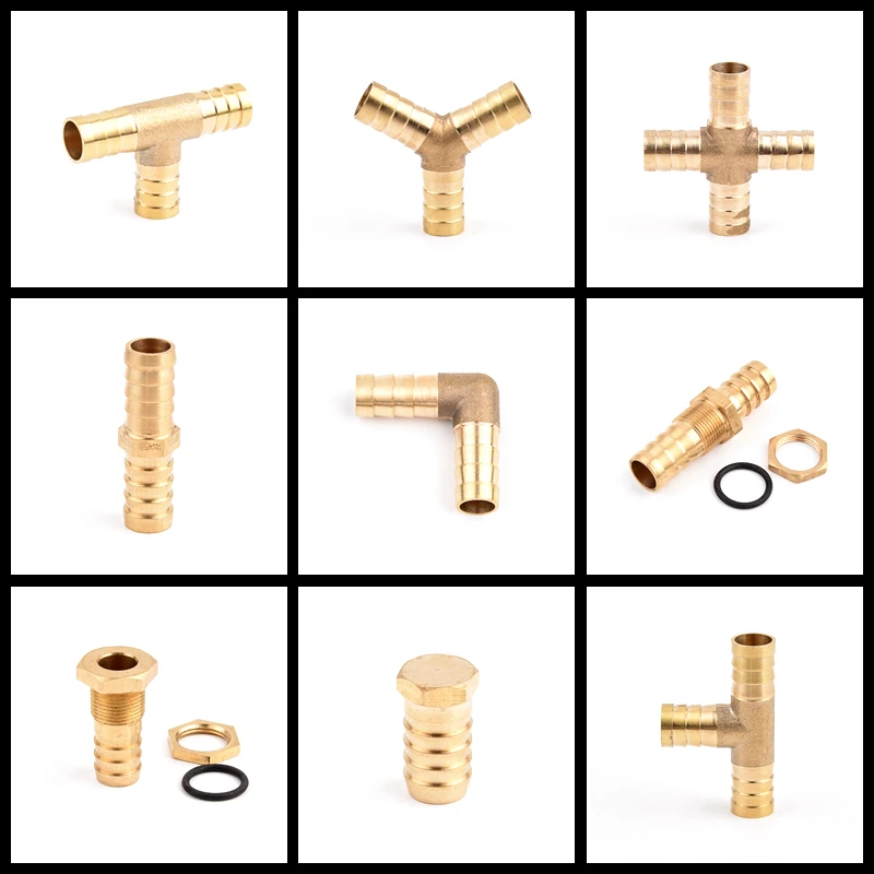 Brass Pipe Fitting Tee T Type 3 Way Connector Adapter 3/4/5/6/8/10/12/16/19mm Hose Barb Pagoda Water Tube Fittings Brass Joint