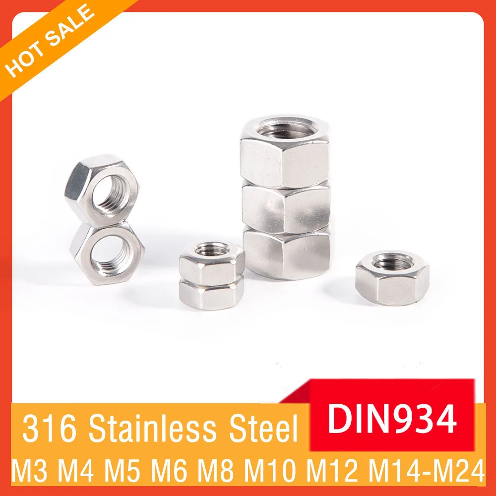 M3 M4 M5 M6 M8 M10 M12 M14 M16 M18 M20 M22 M24 DIN934 A4-80 316 Stainless Steel Hex Hexagon Nuts Coarse Thread