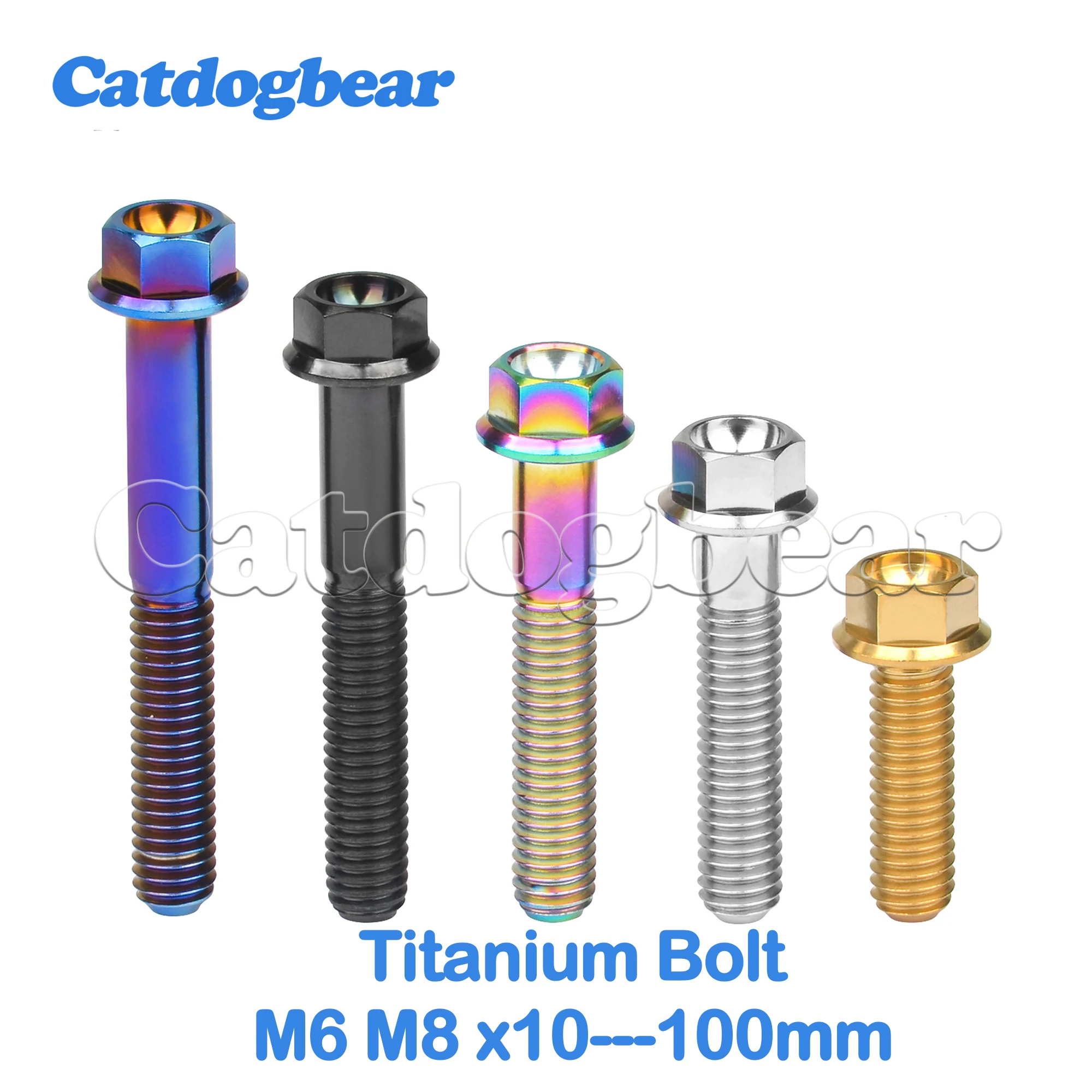 Catdogbear Titanium Bolt M6/M8X10 15 20 25 30 35 40 45 50 55 60 65 75 80 90mm Hex Head Flange Screw for Motorcycle Disc Brake