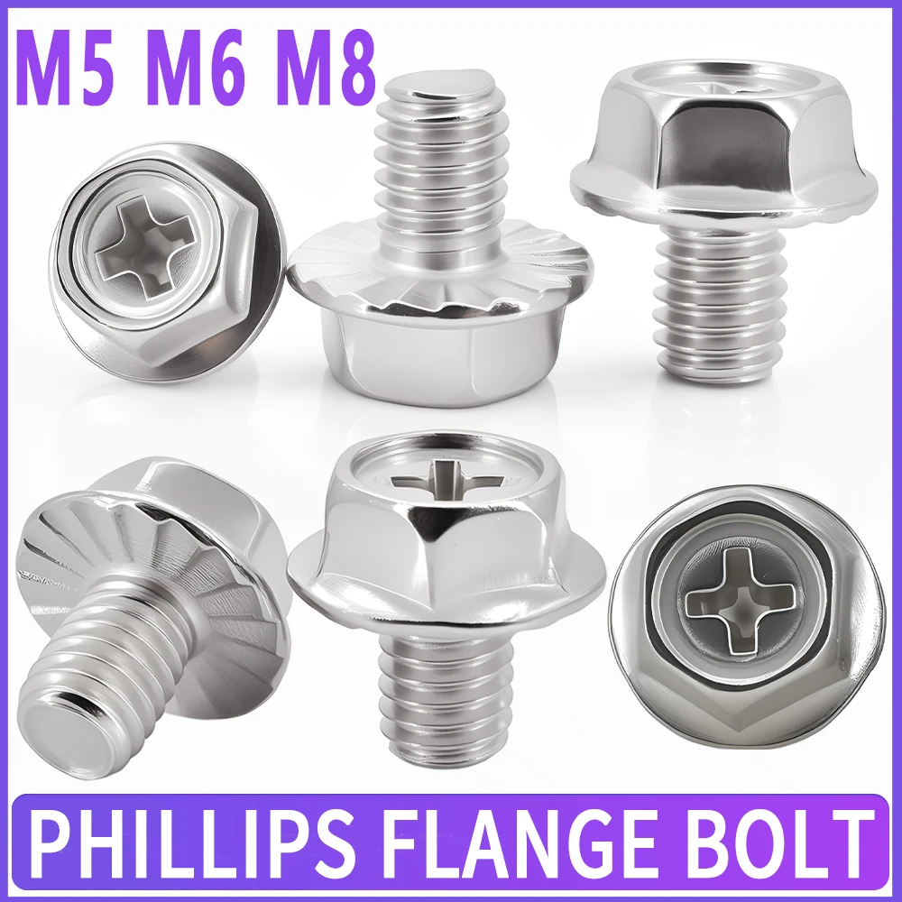 304 Stainless Steel M5 M6 M8 Cross Flange Screw Outer Hexagon Anti-slip Bolts Metric Hex Head with Serrated Flange Washer Screws