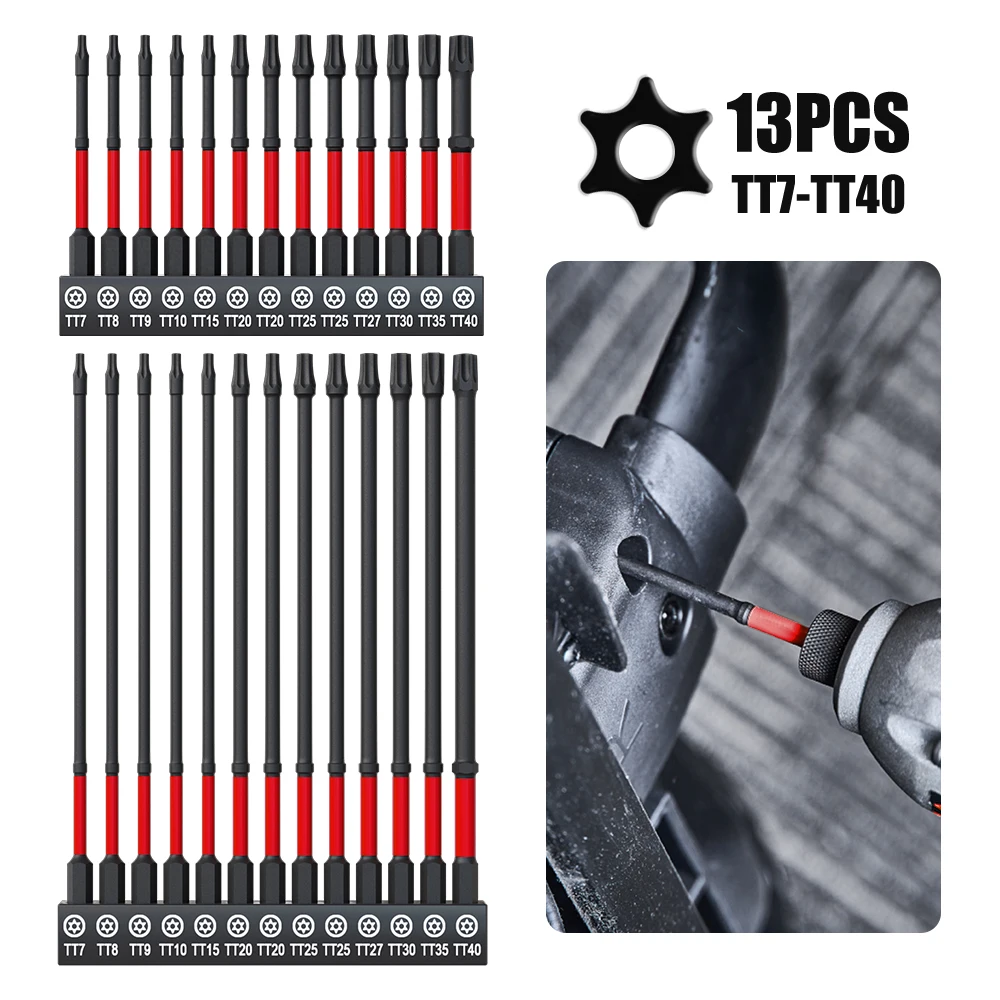 13pcs Impact Torx head Allen Wrench Drill Bit Set ,T7-T40 Hex-Shank S2 Steel Screwdriver Bits Metric Magnetic