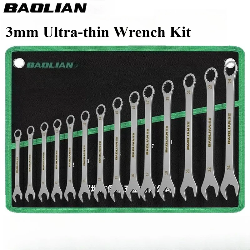3mm Ultra-thin Open Box Dual-purpose Wrench Set 6-24mm Stainless Steel Spanner Metric Ratcheting Combination Wrench Kit with Bag  Read more