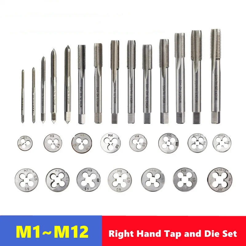 2pcs right hand metric tap die set M1-M12, used for machine tool internal and external thread tapping and thread repair tools  Read more
