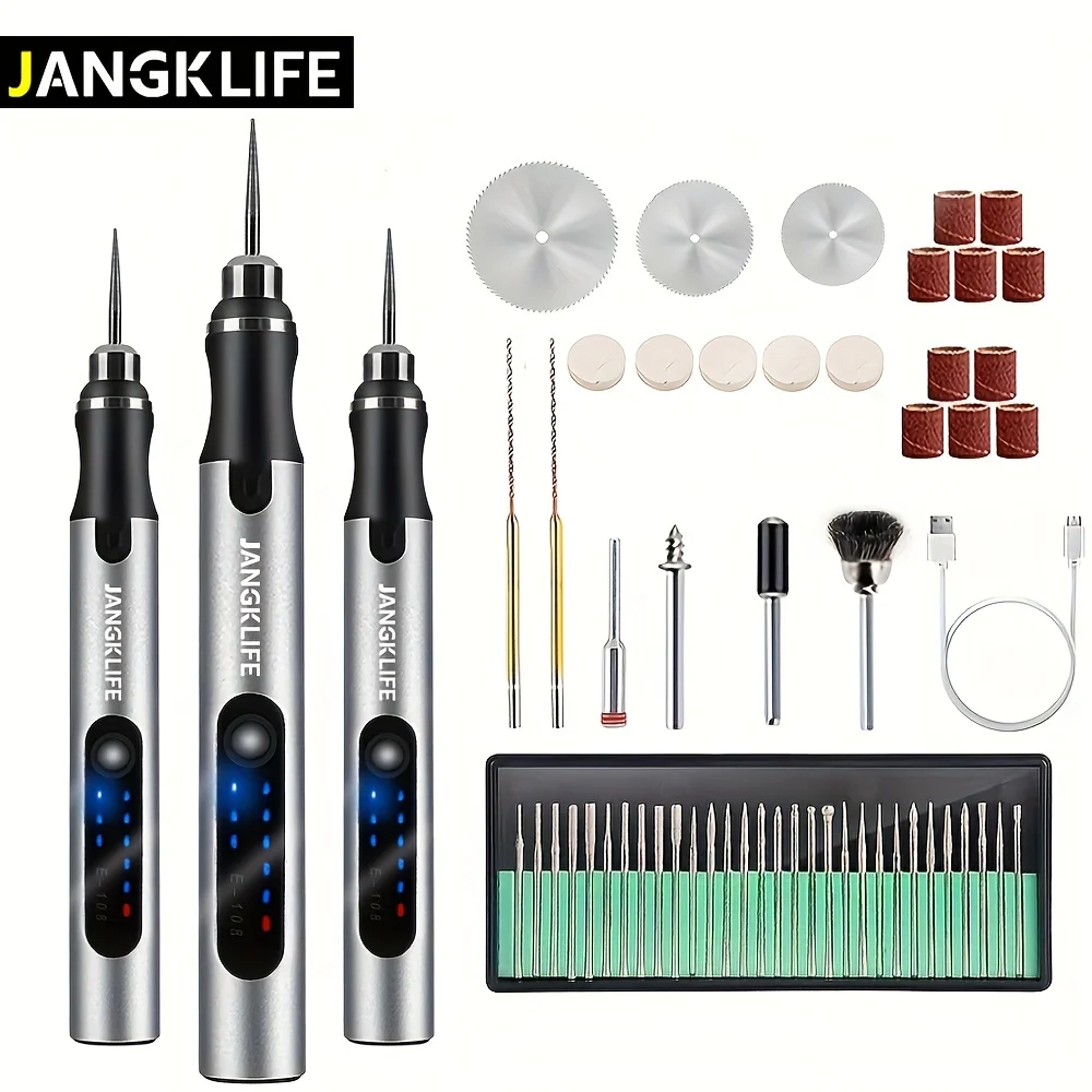 JANGKLIFE Kit Woodworking Engraving Pen DIY For Jewelry Metal Glass Mini Wireless Drill USB Cordless Rotary Tool