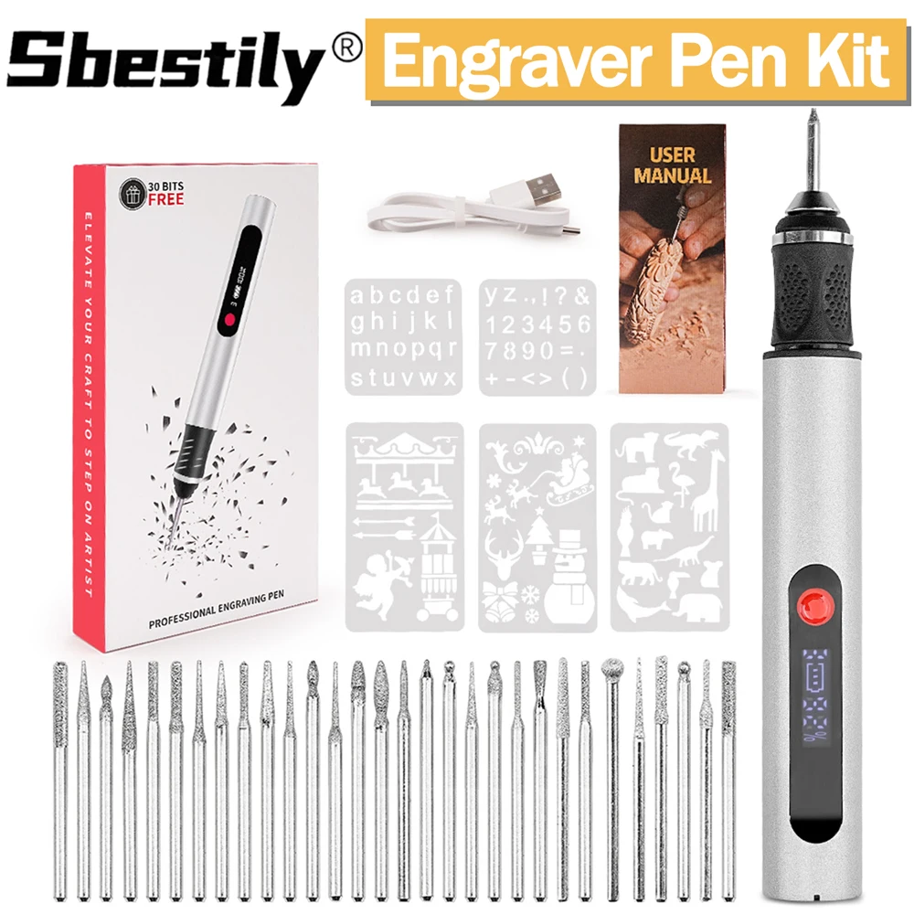 Mini Electric Drill USB Wireless Handheld Drill Woodworking Engraving Pen with 30 Bits And 5 Stencils for Jewelry Metal Glass  Read more