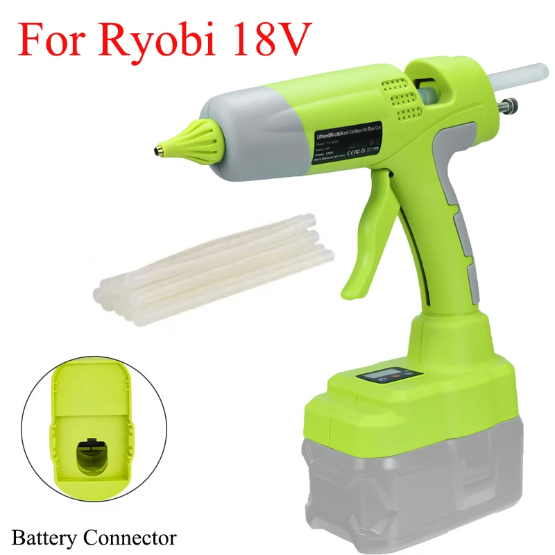 100W Cordless Handheld Hot Glue Gun Display Temperature DIY Electric Repair Tool with 11mm Glue Stick for Ryobi 18V Batteries