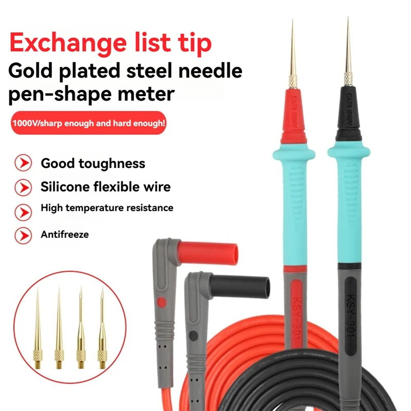 Silicone 20A gold-plated special tip Digital Multimeter Test Lead 1000V Slicon Rubber Wire Retardant Gilded Sharp Needle Probe