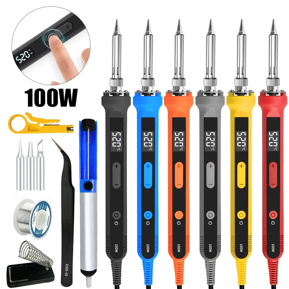 100W Digital Soldering Iron Set Kit 80W with ON/OFF Switch Adjustable Temperature LCD Welding Heater Electronic Soldering Kit