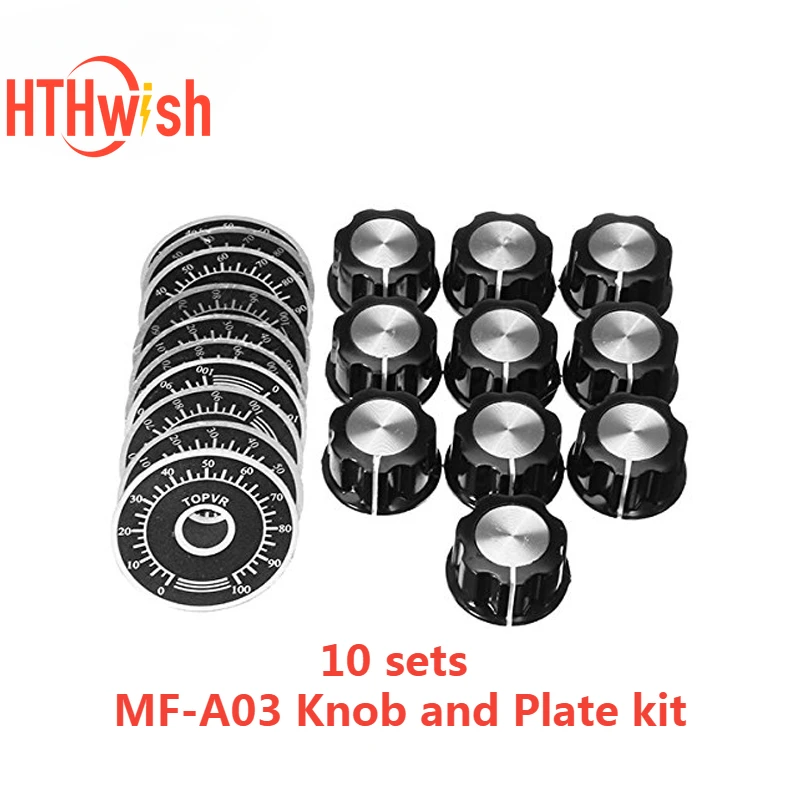 10 Sets Potentiometer Knob Kit 6mm MF-A03 Dial Knob and MF-A03 Bakelite Knob Scale Plate Sheet Digital Potentiometer Set  Read more