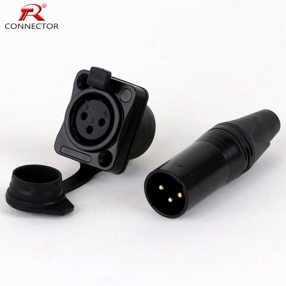 1set Waterproof 3Pins XLR Male Female Plug Panel Mount Socket Adapter Dustproof Cover Outdoor Performance Audio Wire Connector