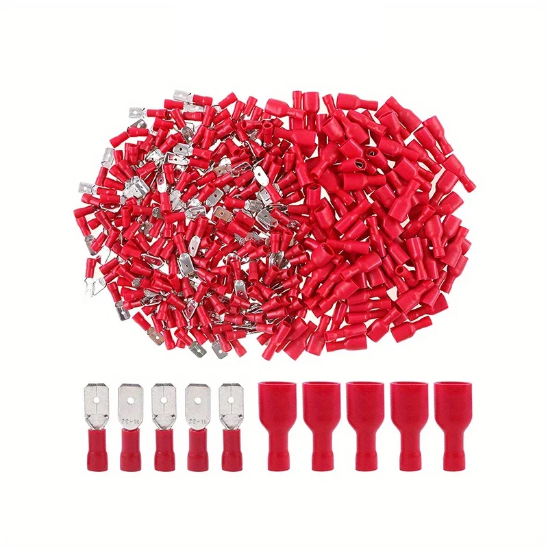 200pcs 6.3mm red Gauge Fully Insulated Male/Female Spade Quick Splice Terminals - The Perfect Wire Crimp Connector Set!