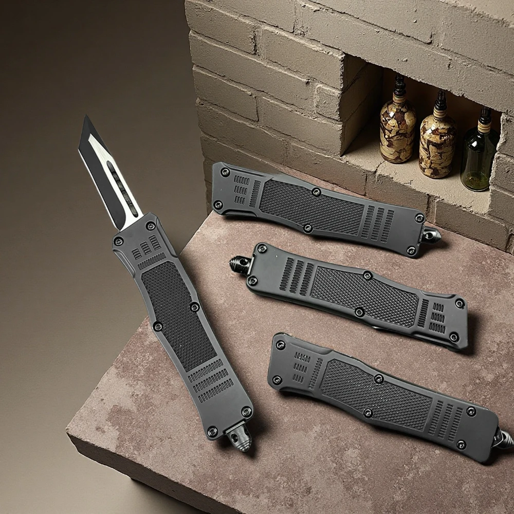 MICR 616 Portable Utility Pocket Knife with Nylon Sheath, 440C Steel Blade Zinc Alloy Black Handle, Camping Survival EDC Tools