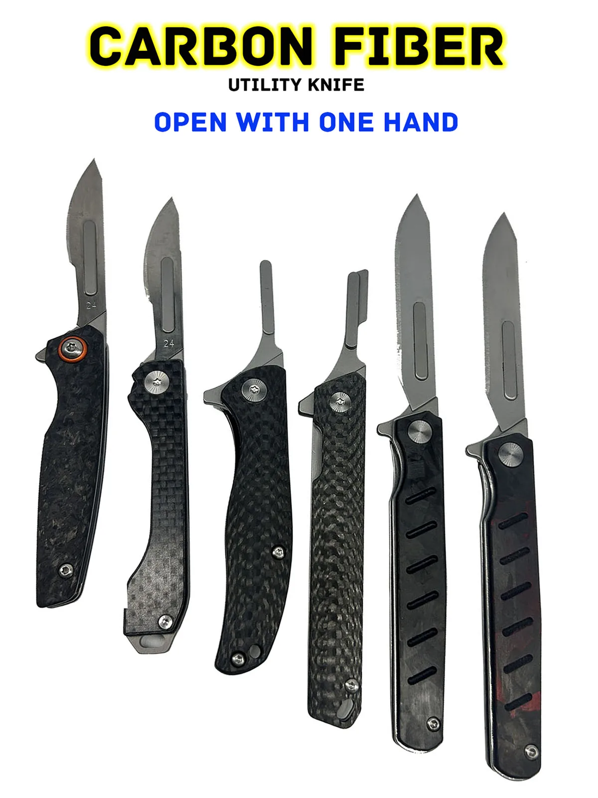 Carbon Fiber Utility Knife Open With One Hand NO24 NO60 Surgical Blade EDC Portable Pocket Folding Knifes Selfdefense Tools  Read more