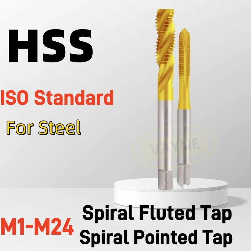 1PCS HSS Tin-Coated ISO Standard Spiral Fluted Tap Spiral Pointed Tap M1M2M3M4M5M6M8M10M12M14M16M18M20M22 Machine Thread Taps