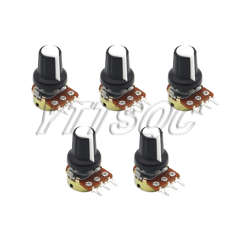 5 Sets WH148 1K 10K 20K 50K 100K 500K Ohm 15mm 3 Pin Linear Taper Rotary Potentiometer Resistor for Arduino with AG2 White cap