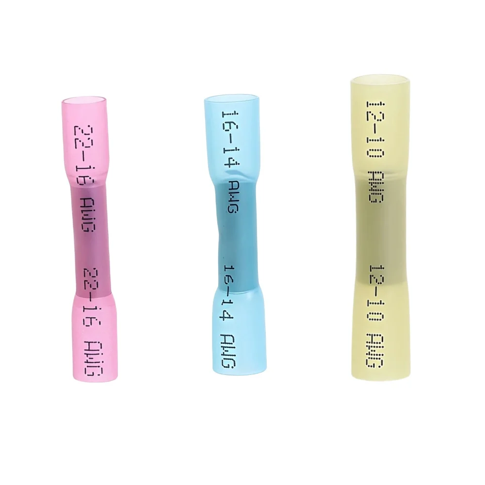 100 Pcs Heat Shrink Butt Wire Connectors 22-16 10-12 AWG Insulated Waterproof Electrical Crimp Wire Splice for Truck, Automobile