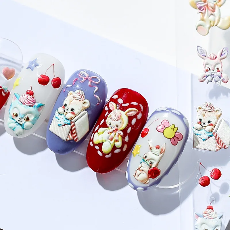 5D Lovely Cake Bear Rabbit Cartoon Soft Reliefs Self Adhesive Nail Art Decoration Stickers 3D Nail Decals Wholesale Dropshipping  Read more