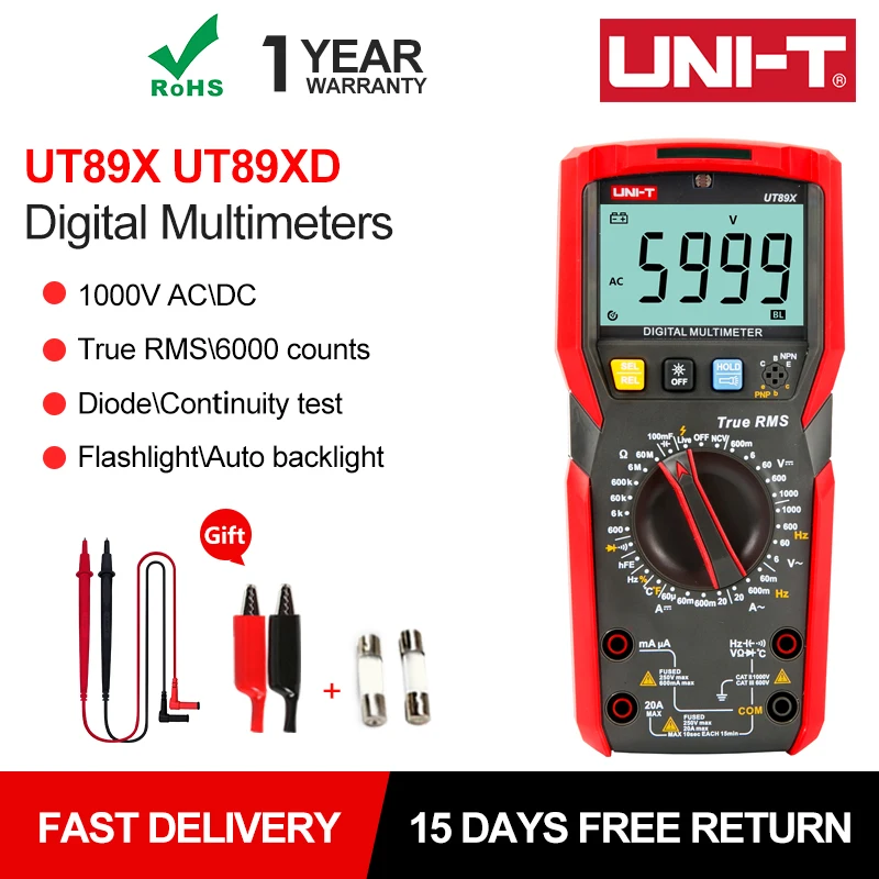 UNI-T UT89X UT89XD Professional Digital Multimeter True RMS NCV 20A Current AC DC Voltmeter Ammeter Electrical Multi Meter
