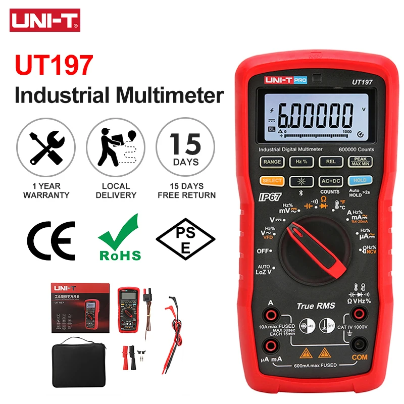 UNI-T Professional Digital Multimeter UT197 1000V AC DC Voltage True RMS Capacitor Tester Frequency Meter Peak IP67 Bluetooth  Read more