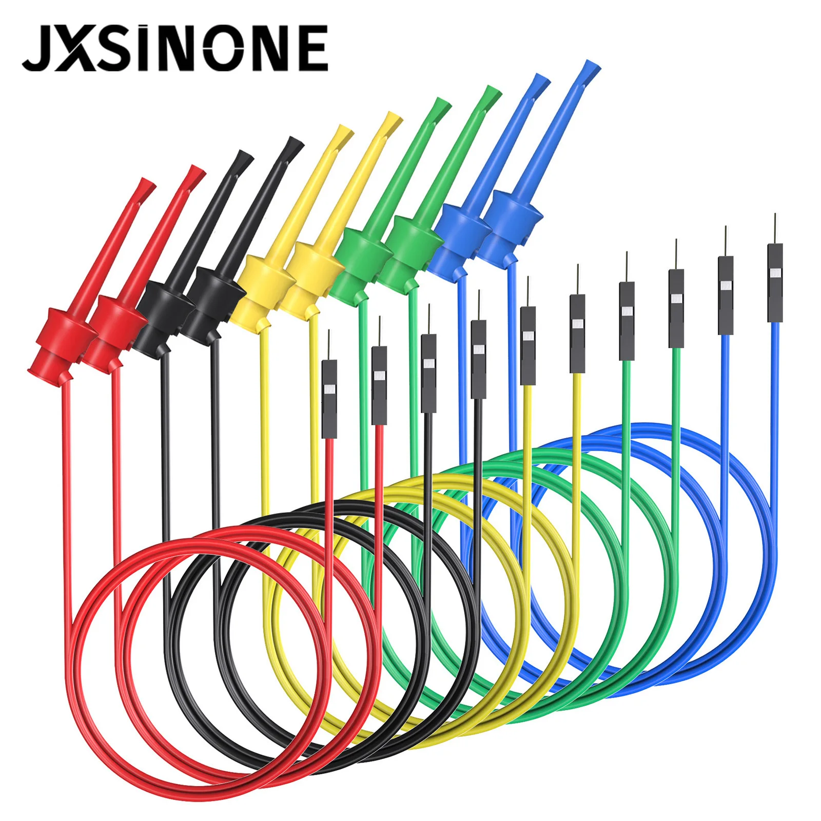 JXSINONE 10PC Dupont Male/Female to Test Hook Clips Silicone Jumper Wires Transistor Tester For Electrical Testing P1534 P1535