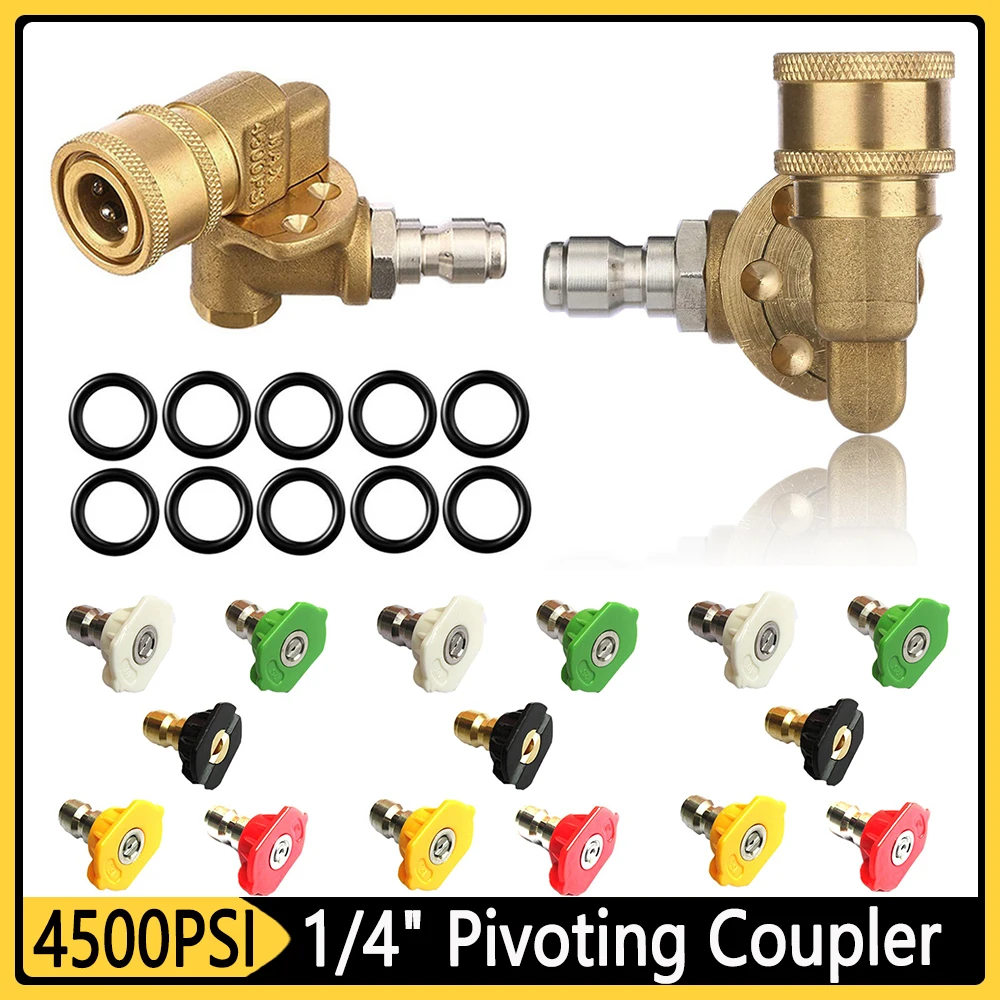 1/4" Quick Connect Rotary Coupler Adjustable Adapter 180 Degree 5 Angle 4500 PSI Spray Nozzles for High Pressure Car Washer