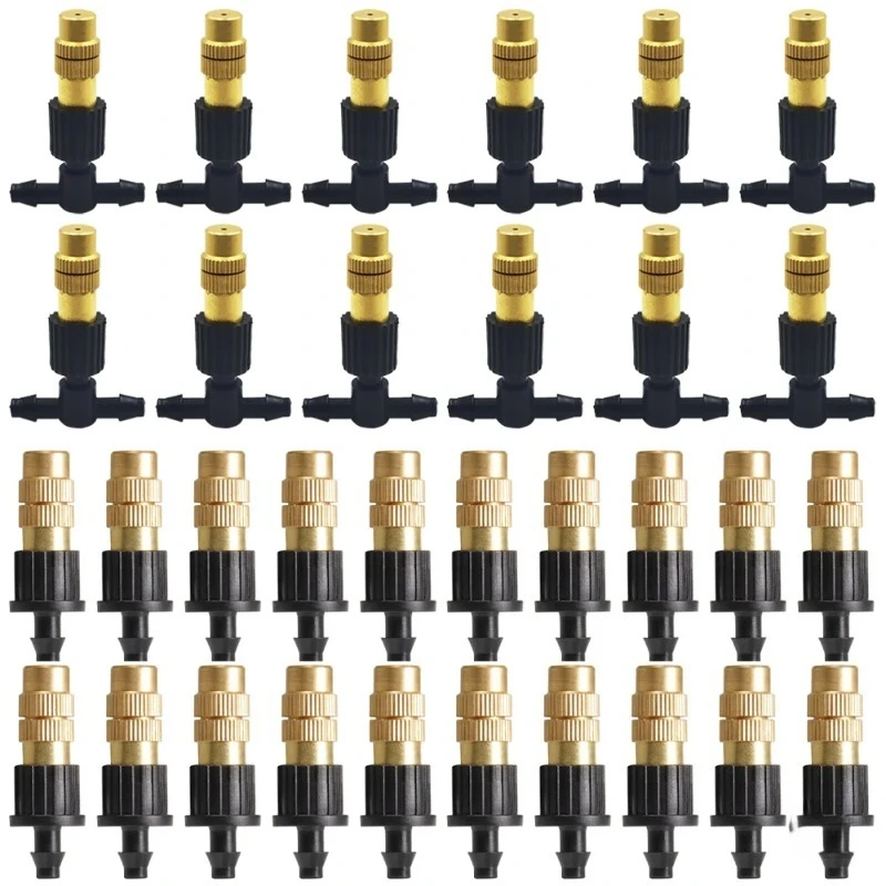 10pcs 4/7PVC Outdoor Misting Cooling System Garden Irrigation Watering 1/4'' Brass Atomizer Adjustable Garden Micro Sprinklers