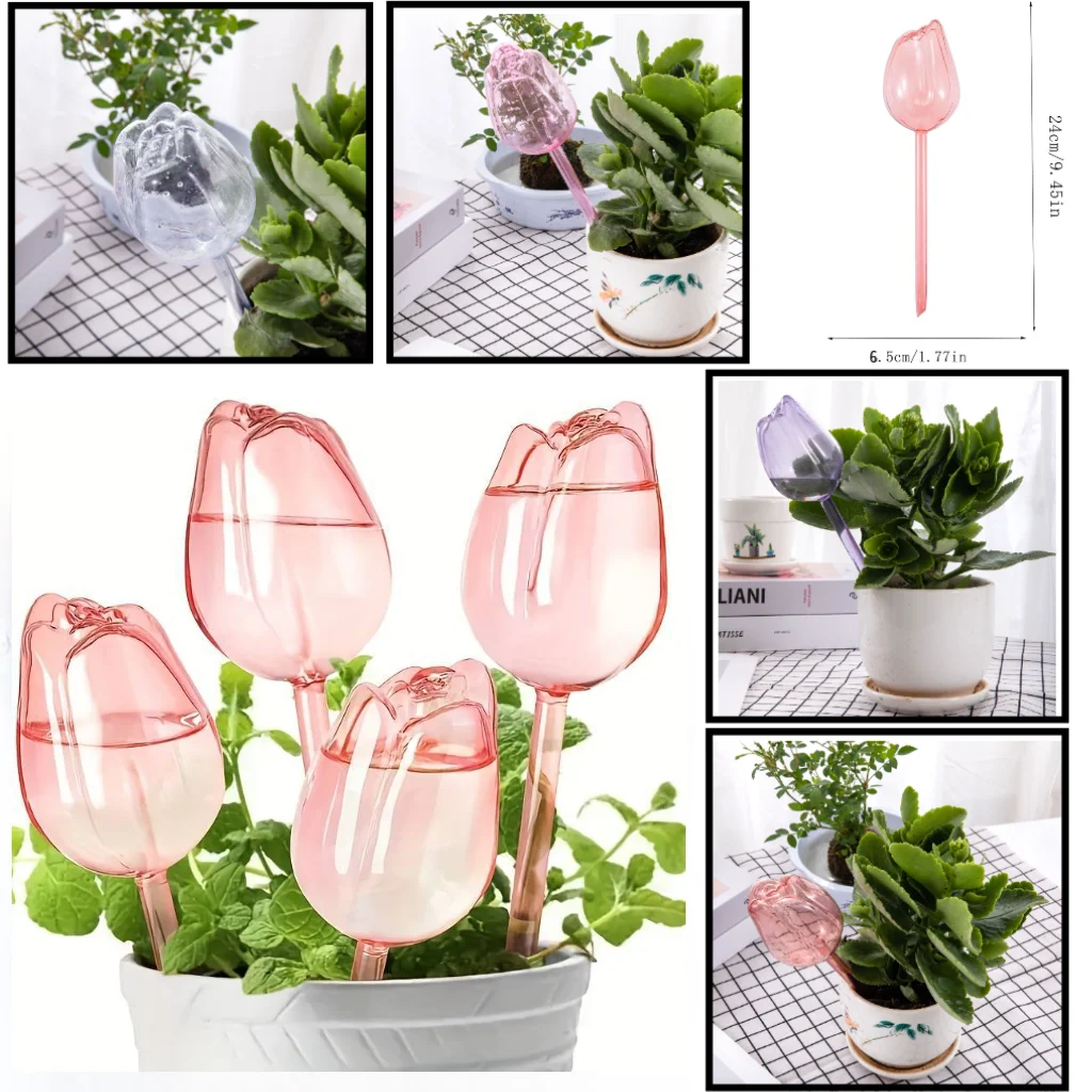 Plastic Pink Tulip Plant Watering Balls, Suitable for Indoor Outdoor Plants, Automatic Watering , and Automatic Plant Drippers
