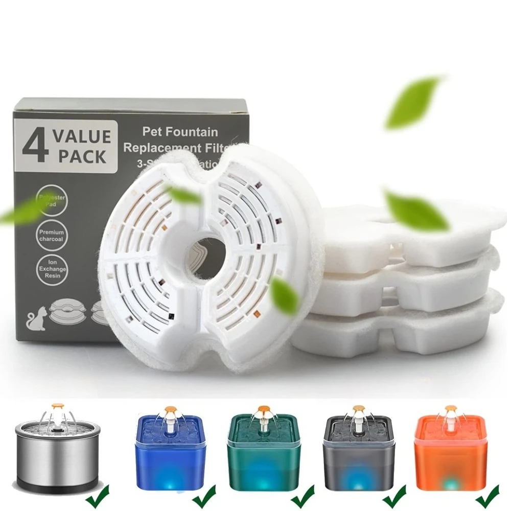 4PC Water Fountain Filters Resin Activated Carbon Fountain Replacement Filter for 2L Cat Water Dispenser Dog Pet Drinking Filter