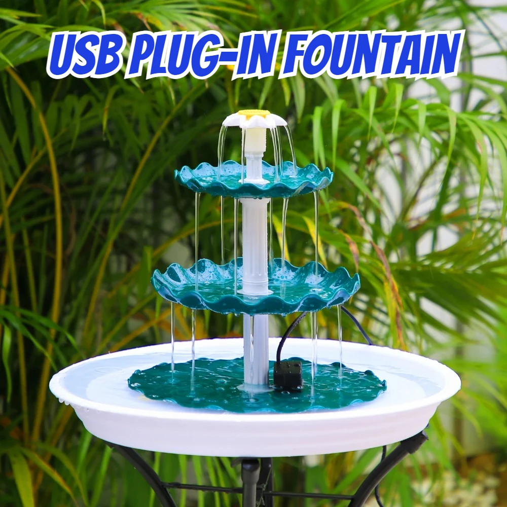 Bathroom Fountain USB Water Pump Outdoor Wave Style Three-layer Flowing Water Garden Pond DIY Decoration 24-hour Work