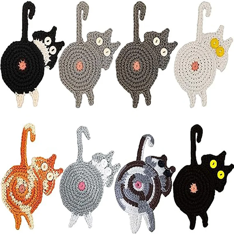 8Pcs/Lot Cartoon Cat Butt Design Heat Insulation Coasters Knitted Anti Scalding Table Cup Mat Cute Home Gift for Christmas  Read more