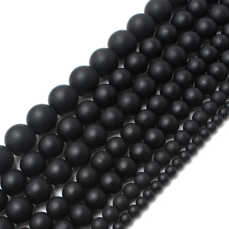 6/8/10mm Wholesale Natural Stone Round Black Matte Onyx Loose Spacer Beads for Jewelry Making DIY Bracelet Necklace Accessories