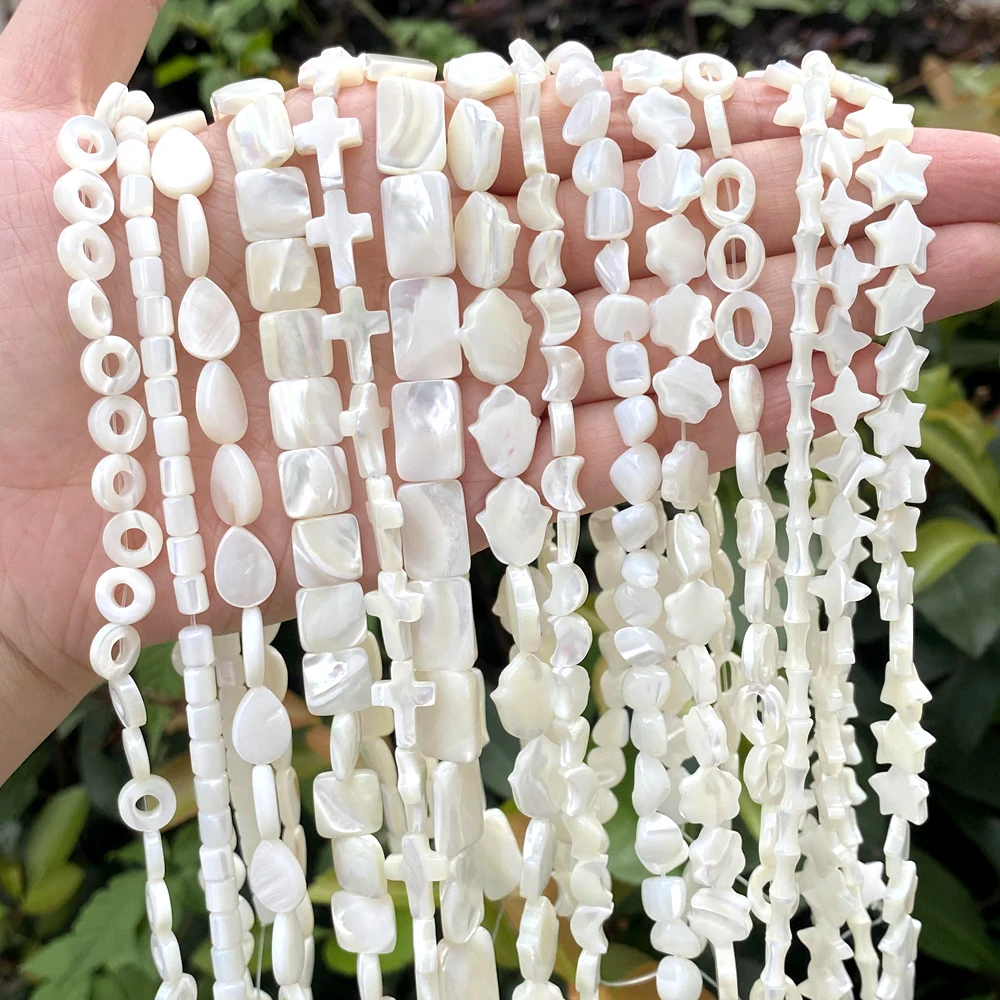 Natural Shell White Love Heart Cross Star Moon Mother Of Pearl Round Spacer Beads For Jewelry Making DIY Bracelet Handmade