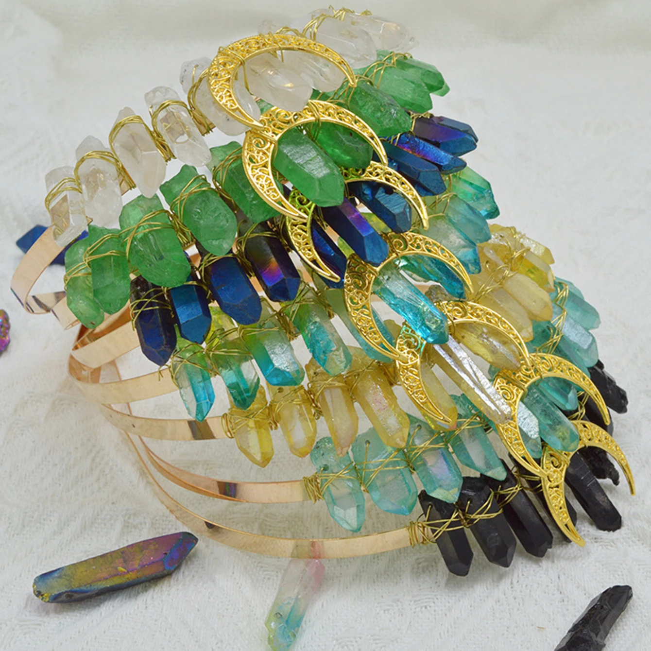 1pc Natural White Crystal Electroplating Rainbow Small Headband Standing Style Moon Accessory Crown Headband Hair Accessory